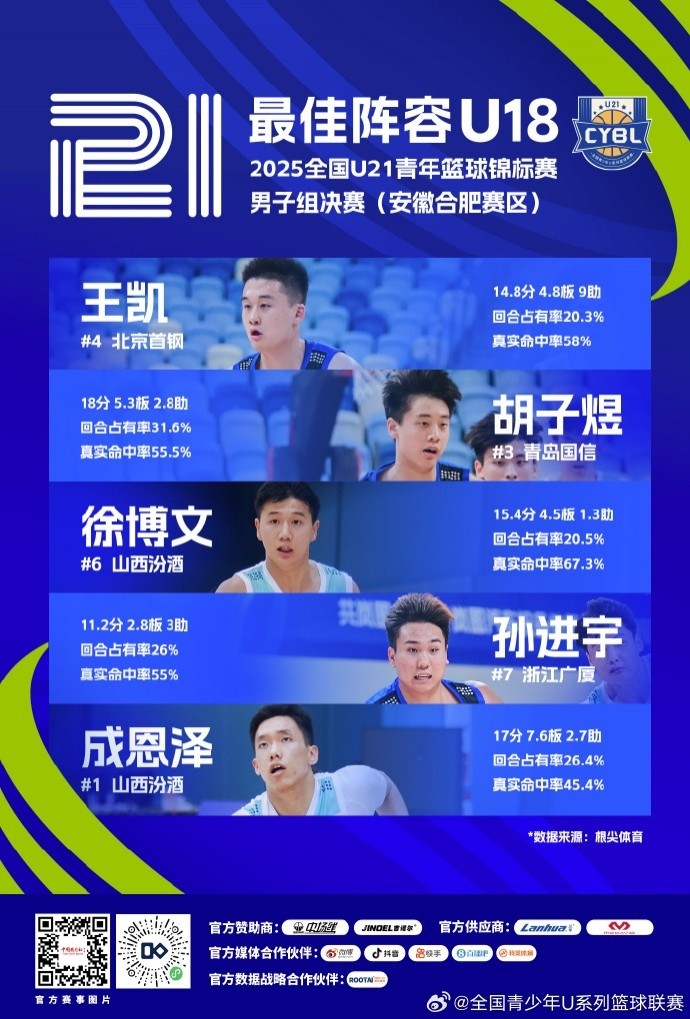 U21青年篮球锦标赛特设U18最佳阵容:王凯、胡子煜、成恩泽在列